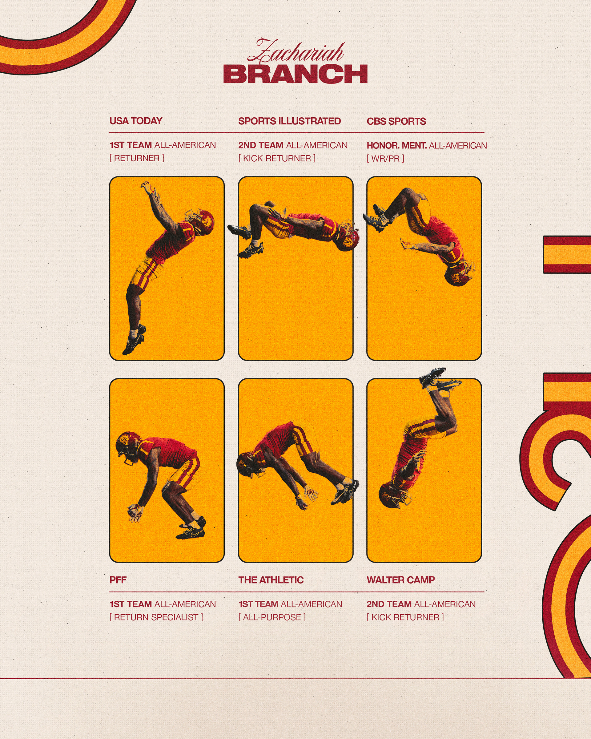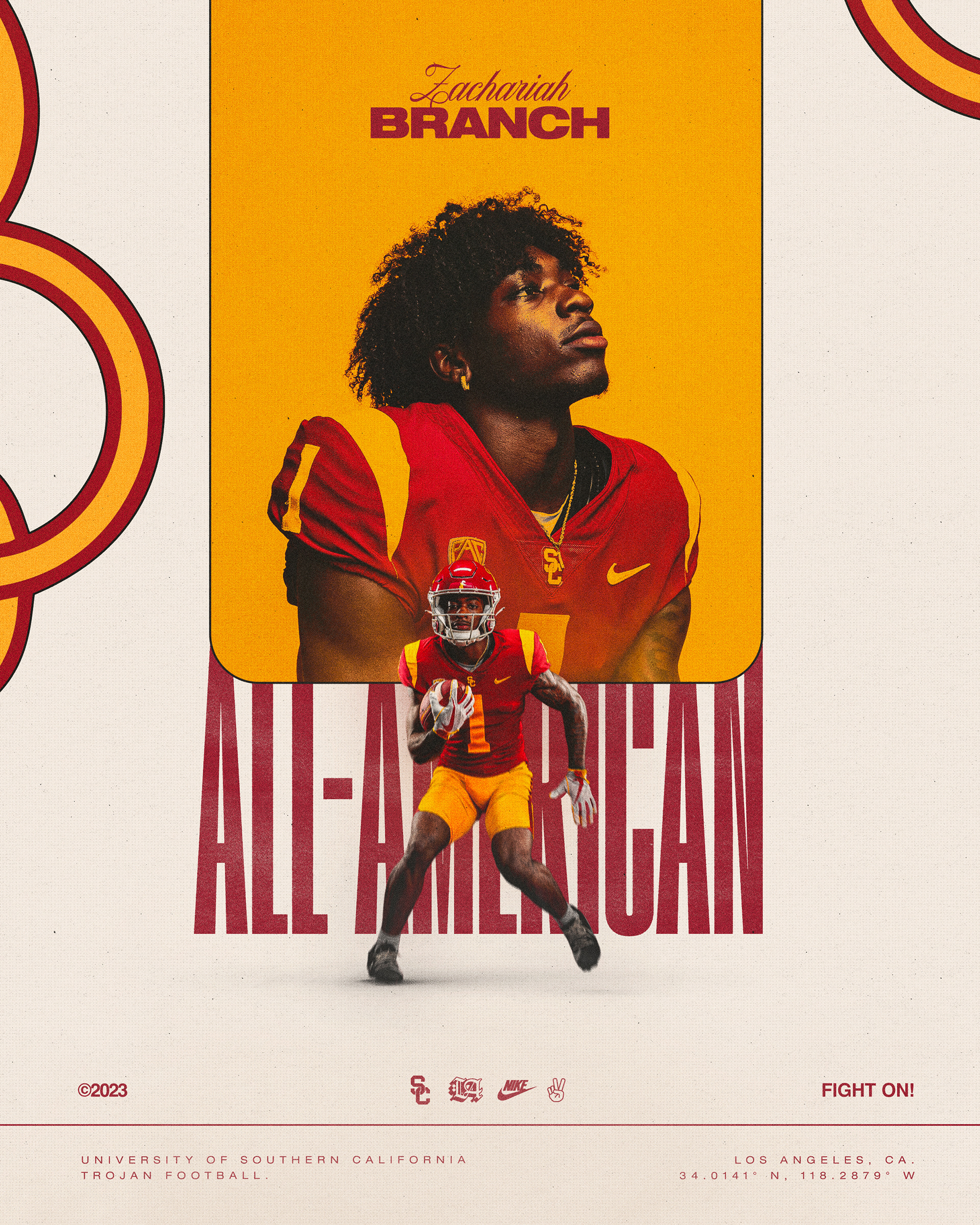 This is a selective collection of work accomplished as the Art Director & Visual lead for USC Football in 2023. Responsible for the development of a cohesive and compelling visual identity for USC Football across all marketing channels. Tasked with creating still and kinetic graphic design projects, including but not limited to social media graphics, promotional materials, and print/digital content. Balancing multiple projects simultaneously while working closely with photographers, videographers, and other creative professionals to create daily visually compelling and informative creative projects. Experimenting with typography, textures, and design elements to create a distinctive and memorable aesthetic for USC Football—while meeting deadlines and consistently upholding the highest quality standard for all deliverables.